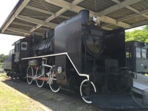 お店を出るとすぐ向かいに昔小海線で走っていたガソリンカーと蒸気機関車が展示されている成知公園があります。その公園でシュシュのスイーツをゆっくりと味わいましょう。