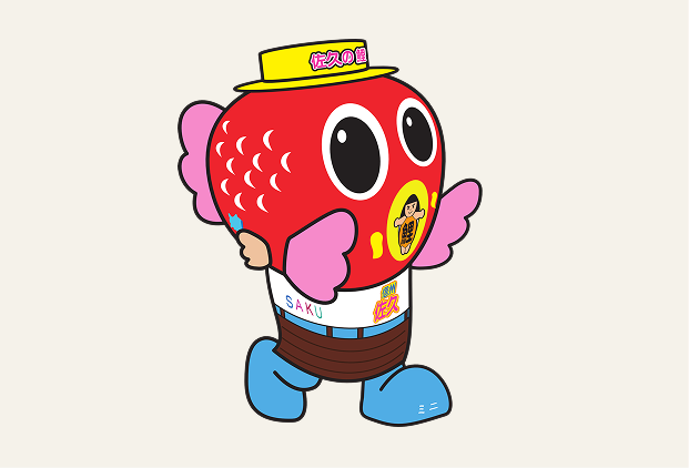 佐久のシンボル「鯉」をイメージとし、尾びれ・背びれが付いています。("大きないちご"や"金魚"に間違われますが、あくまでも鯉です!)