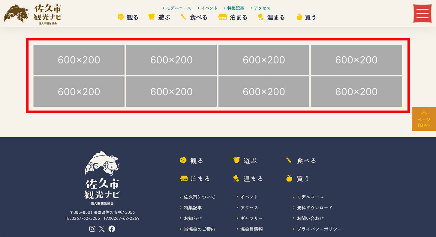 掲載場所 :トップページのフッター上部に掲載